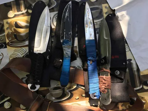 Пистолет и ножи, изъятые у правонарушителя
