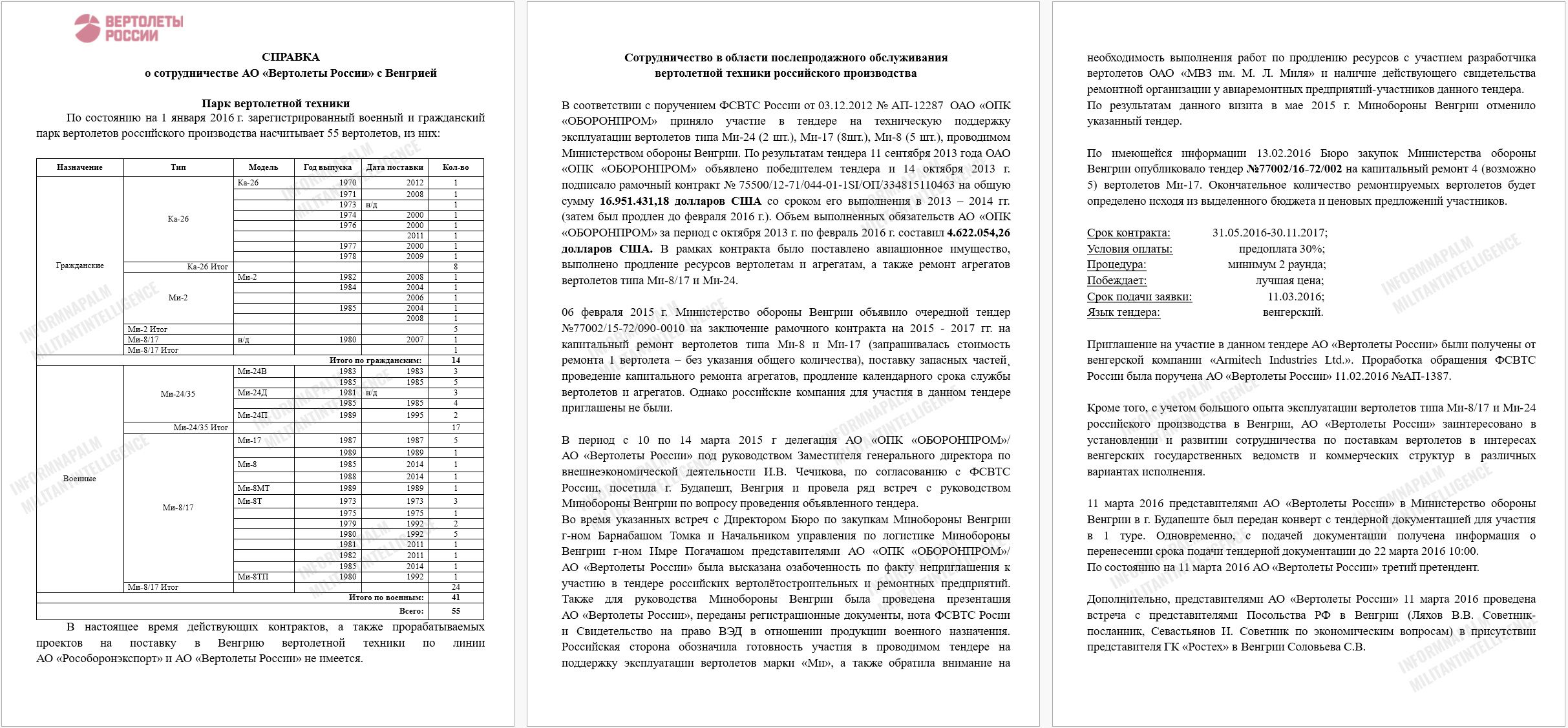 Справка АО "Вертолеты России" о сотрудничестве с Венгрией (2016) / Фото InformNapalm