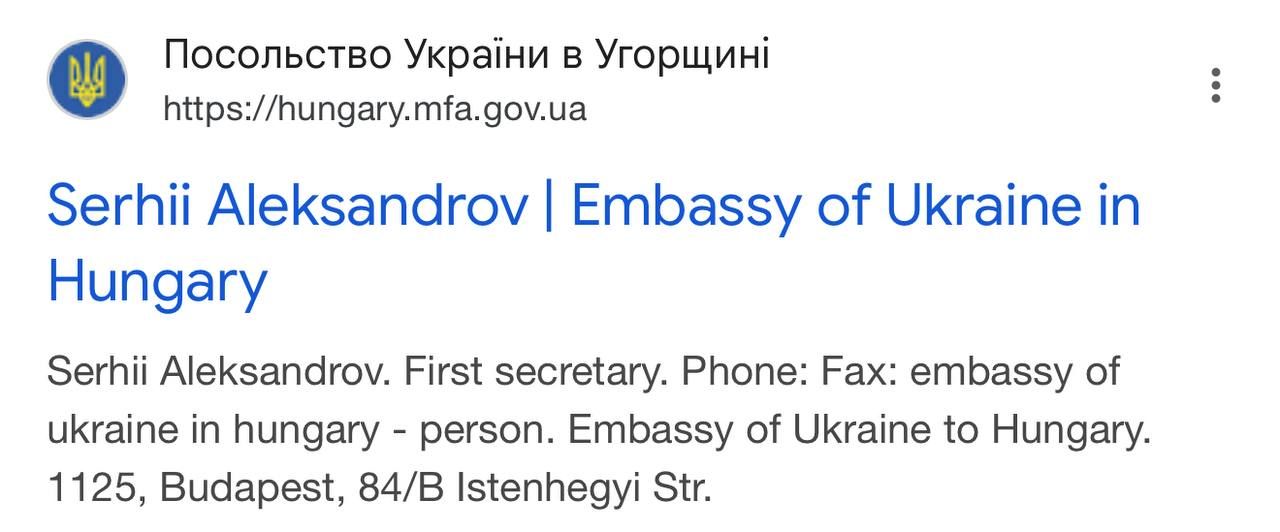 Сергей Александров был работником посольства Украины в Венгрии / Фото из телеграм-канала Виталия Глаголы
