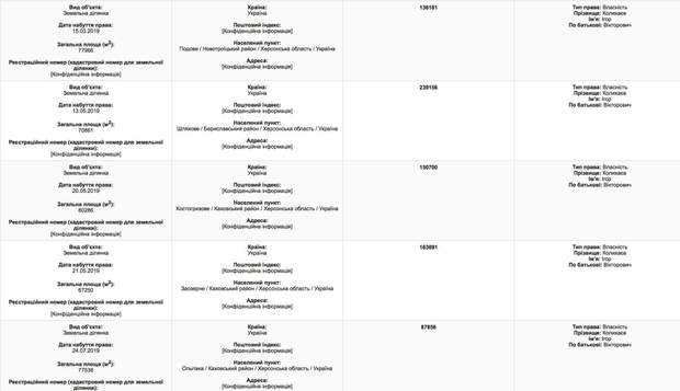 Народный депутат Игорь Колыхаев из Херсонской области последовательно выступает против продажи земли. В Раде естественно тоже голосовал против закона. При этом Колыхаев по случайному стечению обстоятельств является крупным латифундистом. Давайте посмотрим его декларацию: