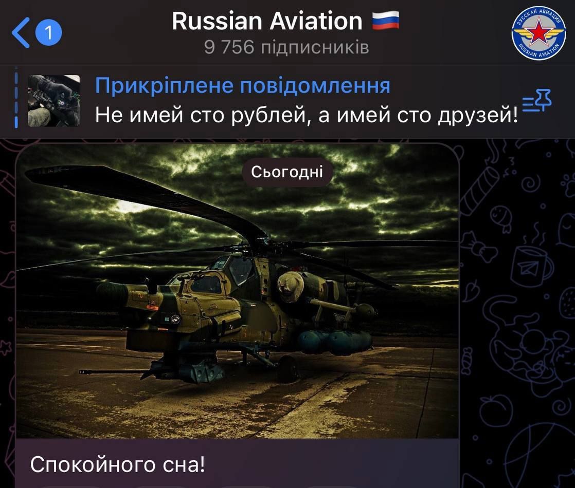 В российском пропагандистском телеграм-канале Fighterbomber в 15:52 по киевскому времени выложили сообщение о потере вертолета, вероятно, Ми-28.