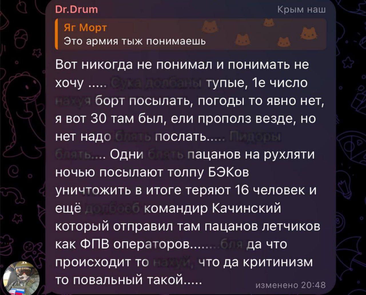 Интересно, что в канале Fighterbomber ныли, что ситуация в Черном море резко изменилась после того, как украинские морские дроны успешно применили ракеты типа "воздух – воздух" по российским вертолетам. Защиты от БЭКов у флота России нет и получить преимущество на этом участке оккупанты не могут.