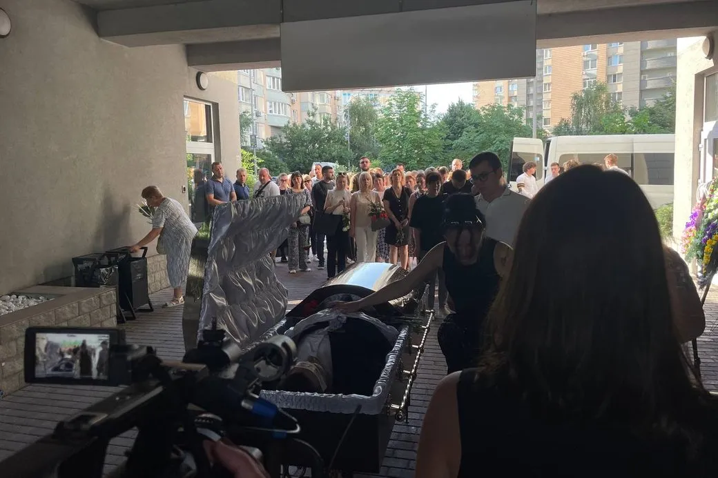 Утром в четверг, 11 июля, возле клиники "Адонис" собрались около сотни людей, чтобы попрощаться с врачом УЗИ-диагностики, который погиб во время ракетного обстрела столицы 8 июля.