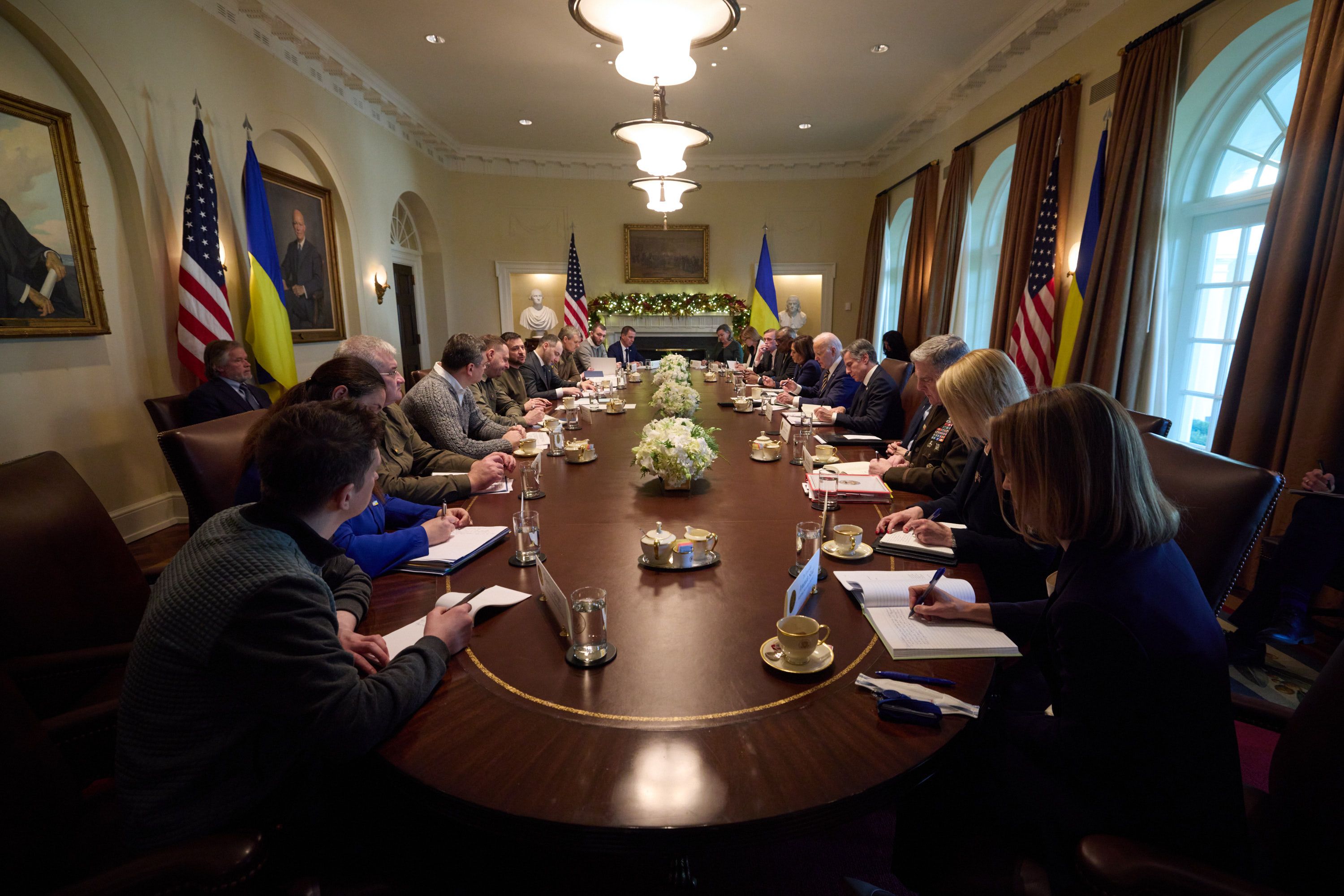 Для украинского президента это "большая честь" – быть в Белом доме. Кроме того, Зеленский констатировал, что поддержка от США позволила Украине защититься от российского нападения. Известно, что Байден сказал, что "Россия использует зиму" как оружие, однако Украина и весь ее народ вдохновляют мир и продолжают бороться. В то же время он упомянул, что за несколько минут до визита Зеленского в США Вашингтон объявил о передаче ВСУ систем ПВО Patriot