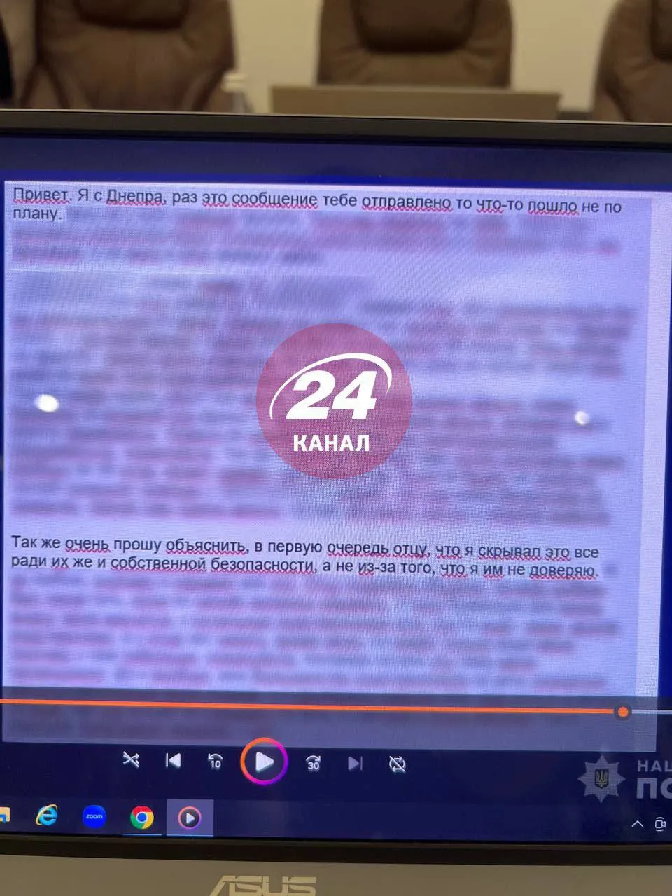 Неотправленное письмо Зинченко / Скриншот с видео Нацполиции