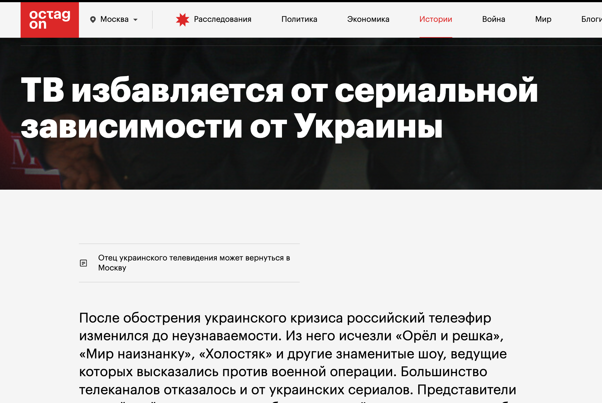 Для нас это может звучать странно, но кремлевские пропагандисты возмущались тем, что украинские киноделы "захватывают" российский рынок. Различные ресурсы даже проводили "расследования", в которых с помощью схем и графиков показывали, какие именно украинские продюсеры работают с российскими телеканалами и как Россия пытается противостоять "сериальной зависимости" от Украины.