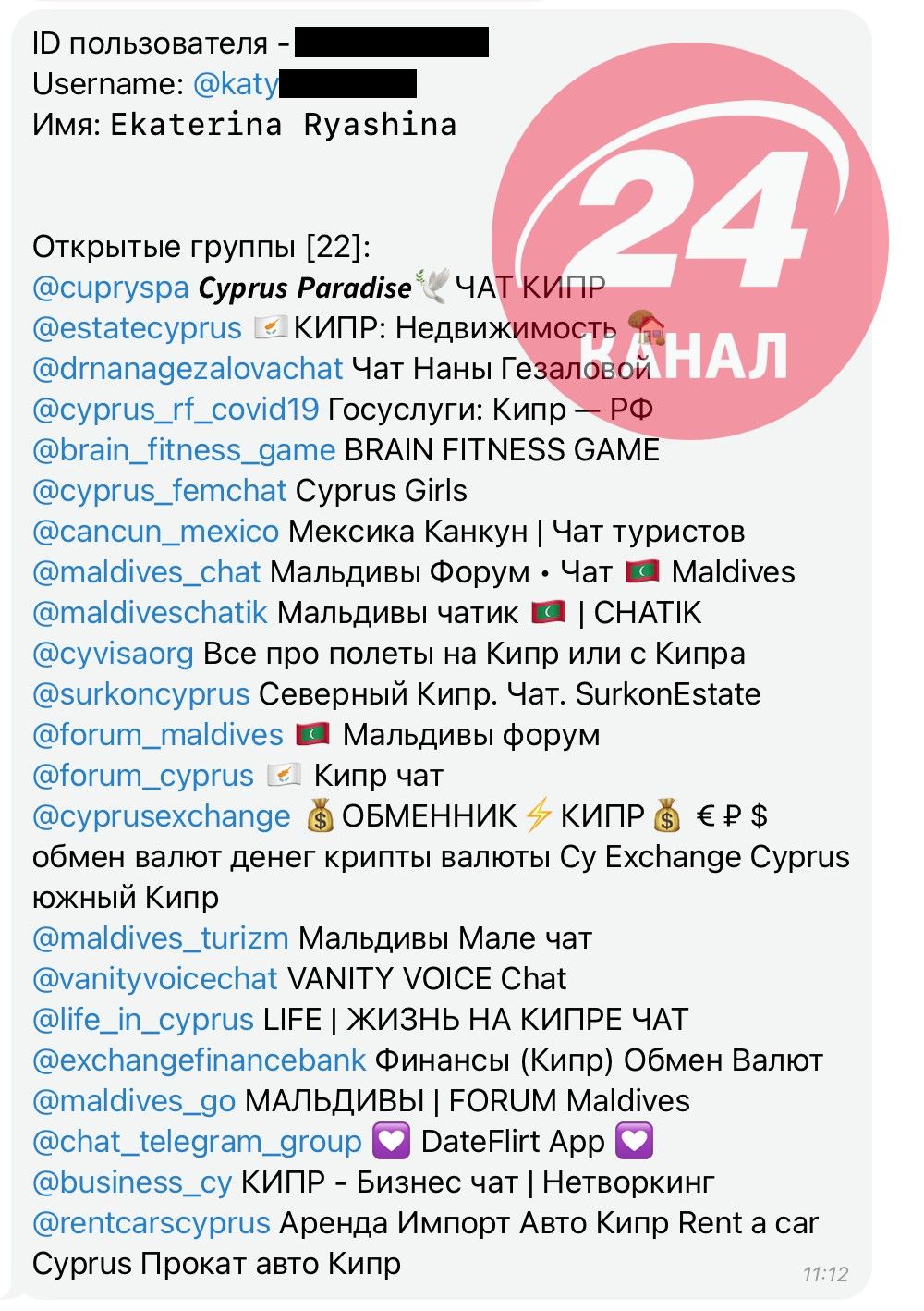 Telegram выявил, что супруги Ряшиных проживают на Кипре / Скриншоты 24 Канала