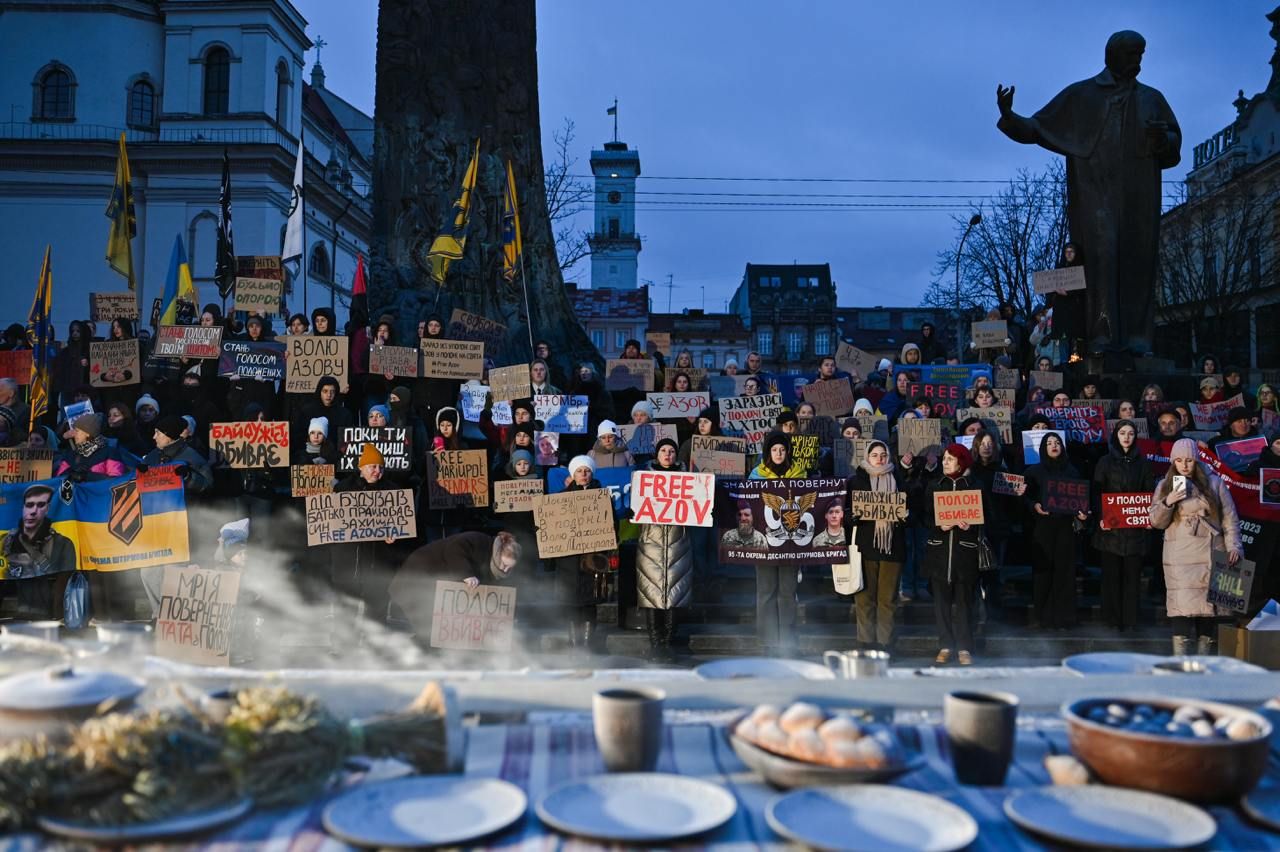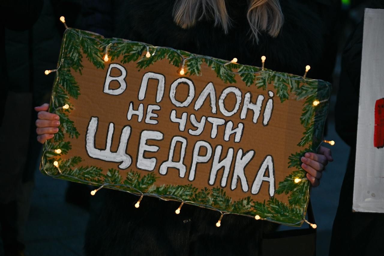 Перед памятником Тарасу Шевченко во Львове 22 декабря состоялась акция-перформанс "Третье Рождество в плену". Ее организовали семьи пленных украинских защитников, чтобы напомнить – пока весь мир празднует Рождество, их близкие находятся в нечеловеческих условиях в российском плену.
