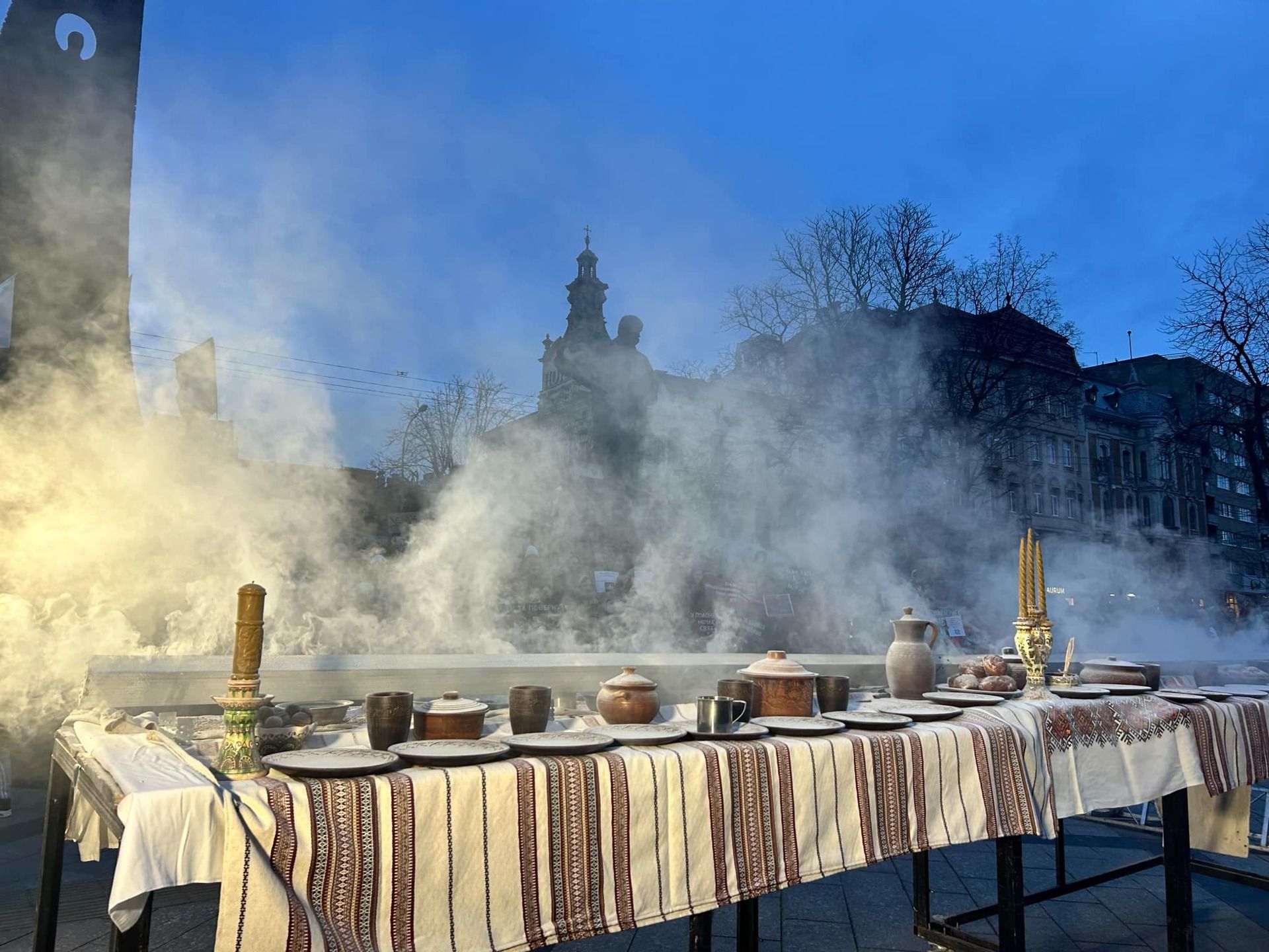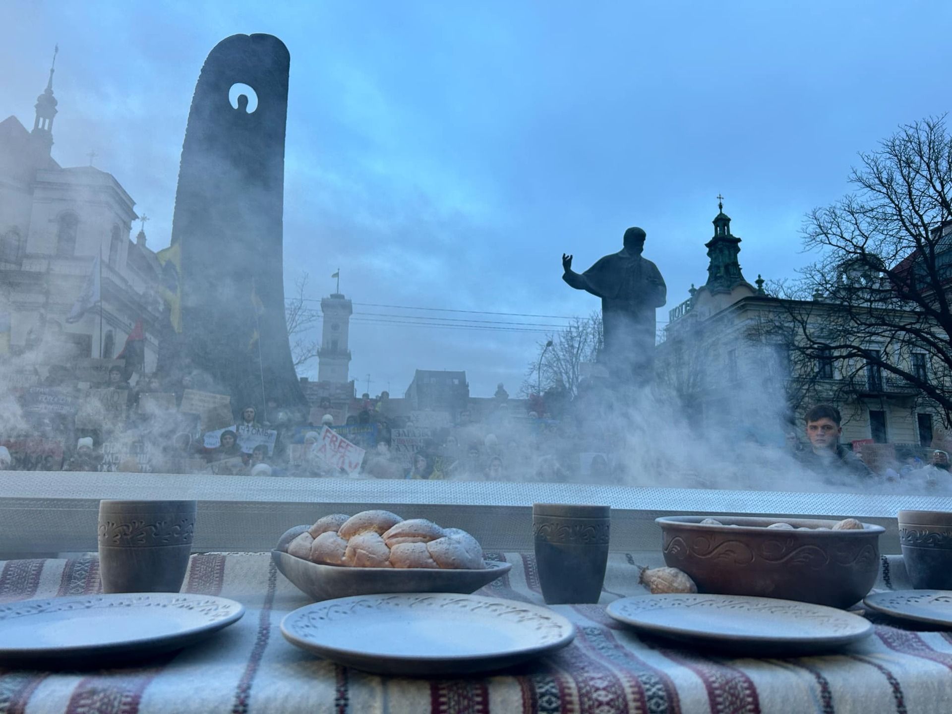 Участники акции подготовили плакаты с надписями и призывами не молчать о пленных азовцах. Организаторы также установили символический рождественский стол. Одна часть символизирует подготовку к Рождеству, а другая – ужасы российского плена.