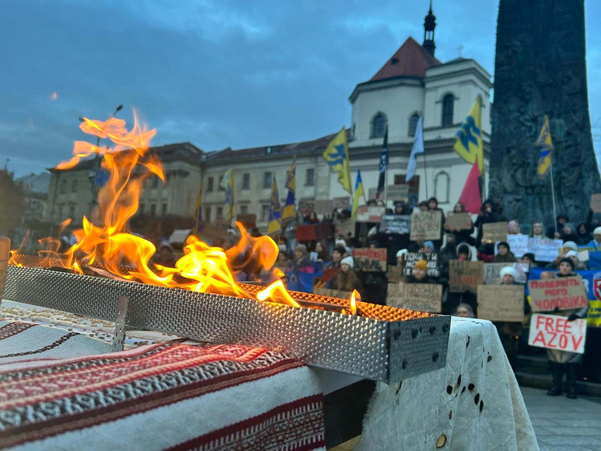 Мэр Львова Андрей Садовый сообщил, что главная цель акции – напомнить о тех, кто встретит третье Рождество в российских застенках.