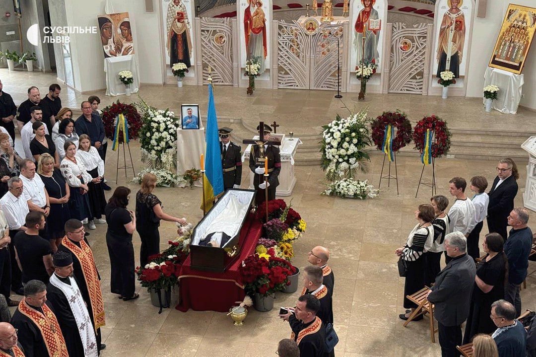 С утра в храме на территории Украинского католического университета присутствующие на похоронах родственники, знакомые и однопартийцы прощались с Ярославом Рущишиным. Ректор вуза Тарас Добко отметил, что Рущишин сделал вклад в культуру и образование.