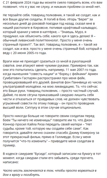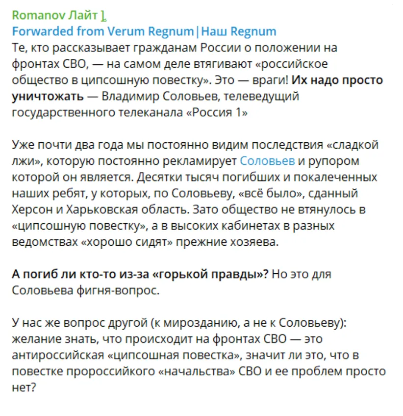 Ответ российского блогера-военкора на слова Соловьева / Фото предоставлено 24 Каналу