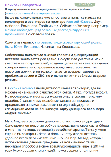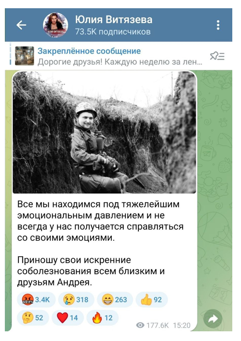 Один из таких инцидентов произошел в начале января, 2024 года когда известная российская пропагандистка Юлия Витязева, известная как ведущая телепрограмм на телеканале "Соловьев Live", выпустила видео об информационной гигиене. В видео Витязева назвала "военкоров", "непроверенными лицами", а их информацию - "непроверенной". Это привлекло внимание военных корреспондентов.