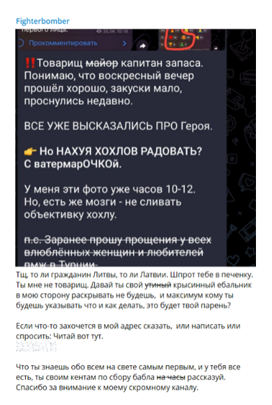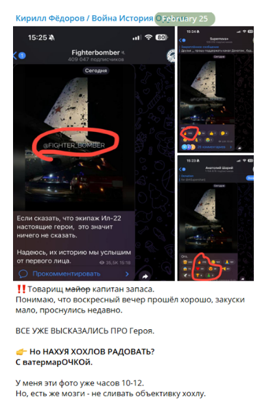 Спустя 6 дней возник конфликт между Кириллом Федоровым, ведущим программы "Федоров Live" на пропагандистском канале "Соловьев Live", и блогером, известным как автор блога "Fighterbomber".