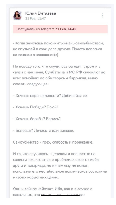 Существуют предположения, что это может привести к дальнейшим загадочным смертям или самоубийствам людей, которые выступали против официального нарратива Кремля о войне.