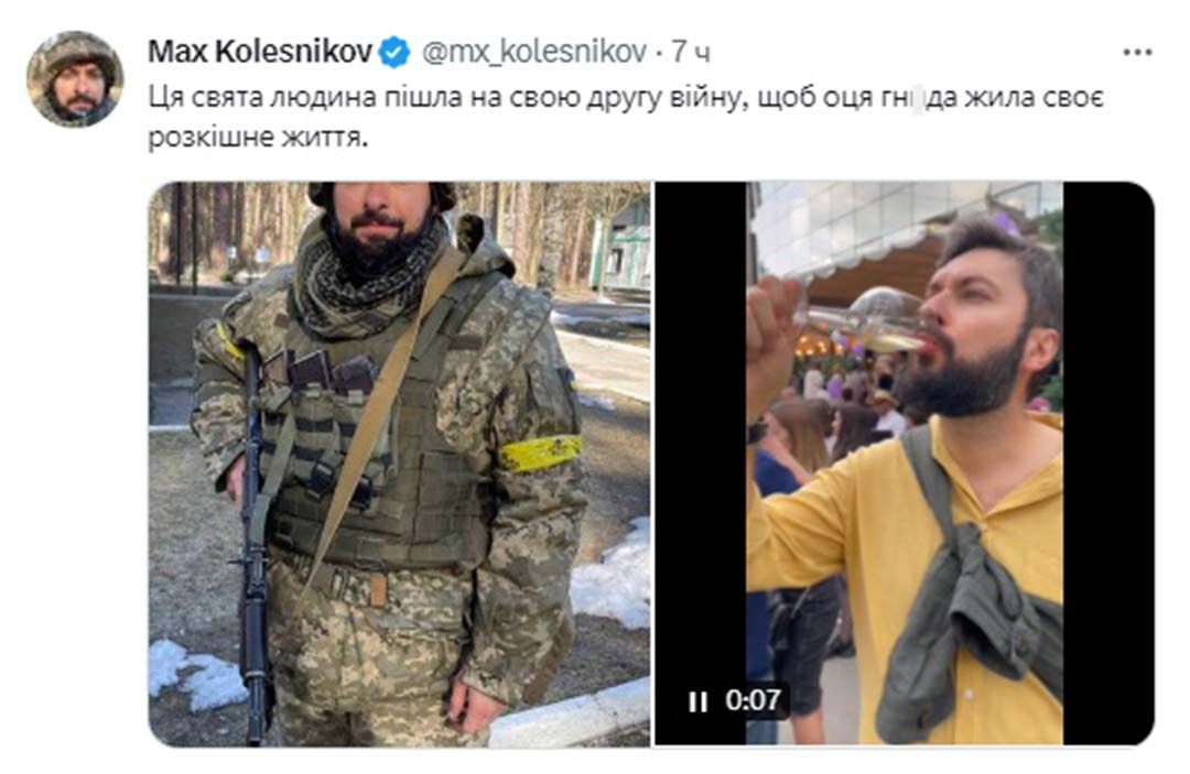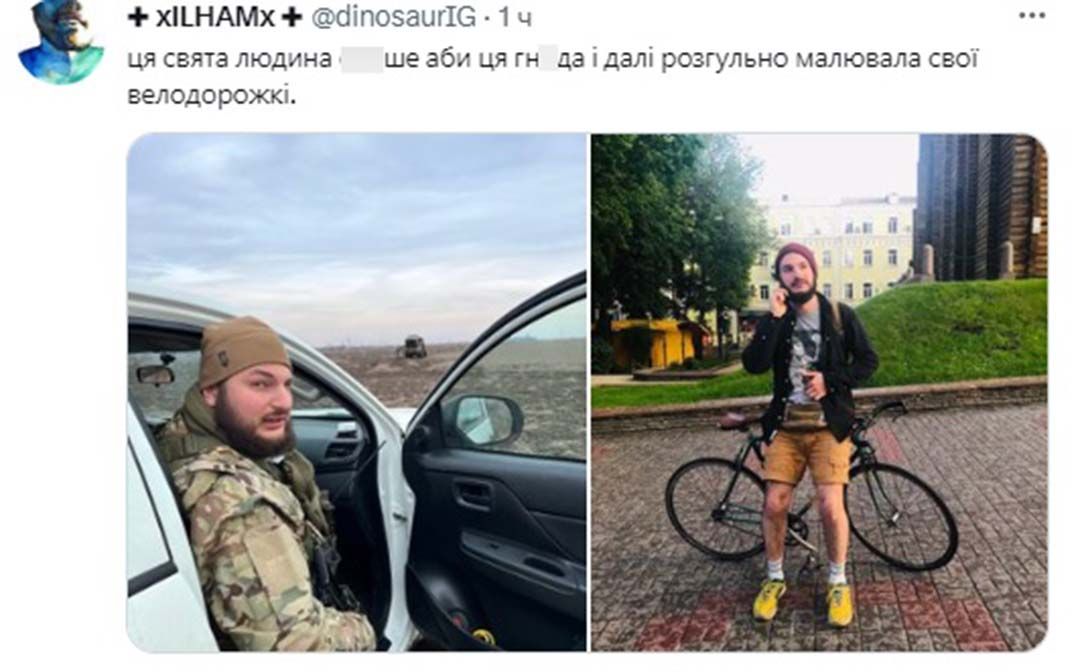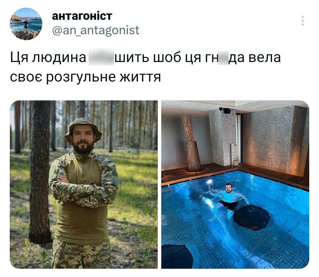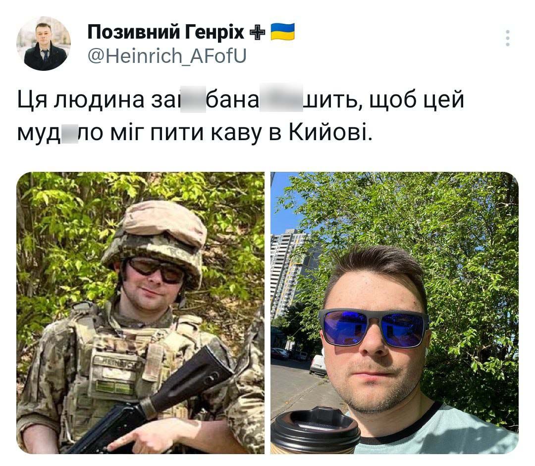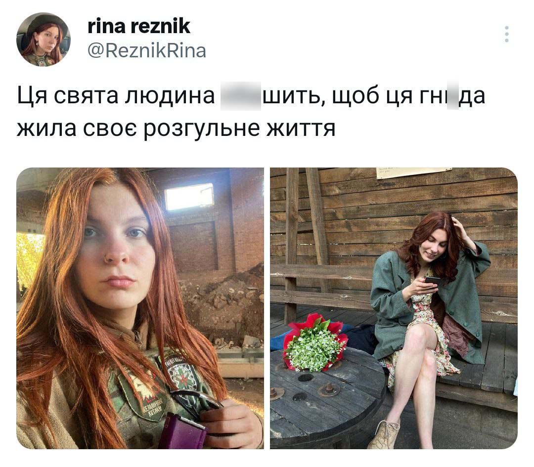 "Этот святой человек пошел на свою вторую войну, чтобы эта гн*да жила свою роскошную жизнь", – написал военный, являющийся киевским бизнесменом и маркетологом.