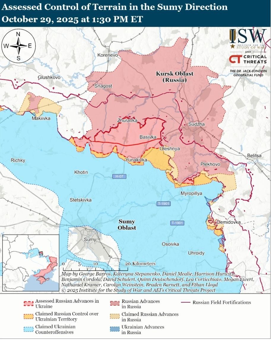 29 октября российские войска продолжили наступательные операции на севере Сумской области, но не продвинулись вперед.