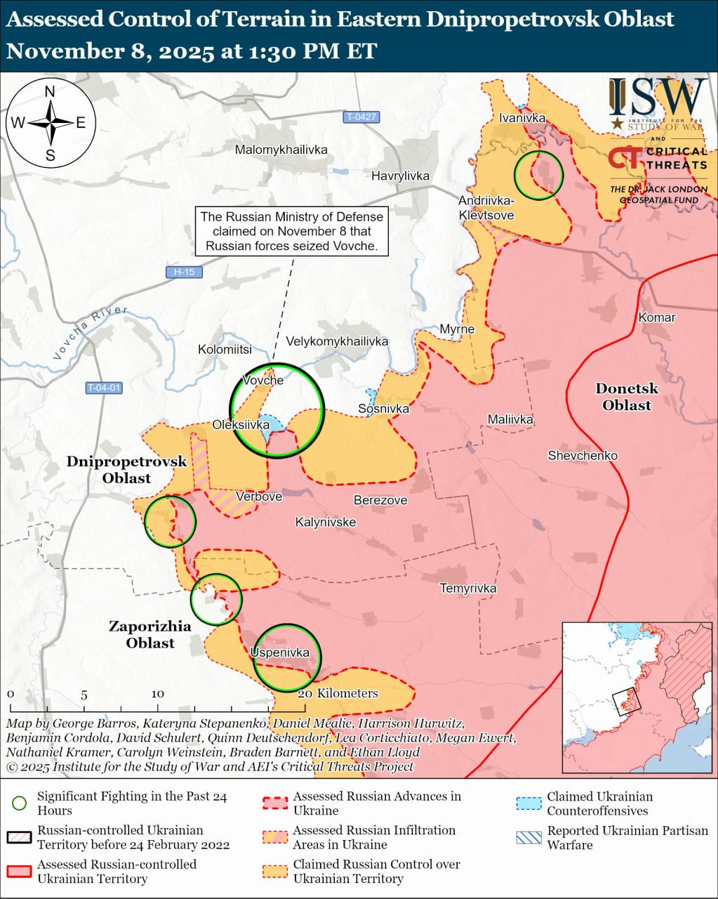 Ситуация на фронте по состоянию на 8 ноября / Фото ISW
