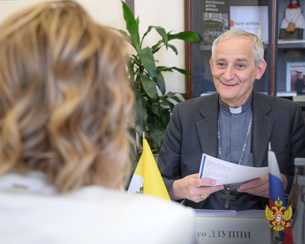 В сети уже обнародовали кадры встречи кардинала Маттео Дзуппи со Львовой-Беловой. Об этом со ссылкой на росСМИ пишет 24 Канал.