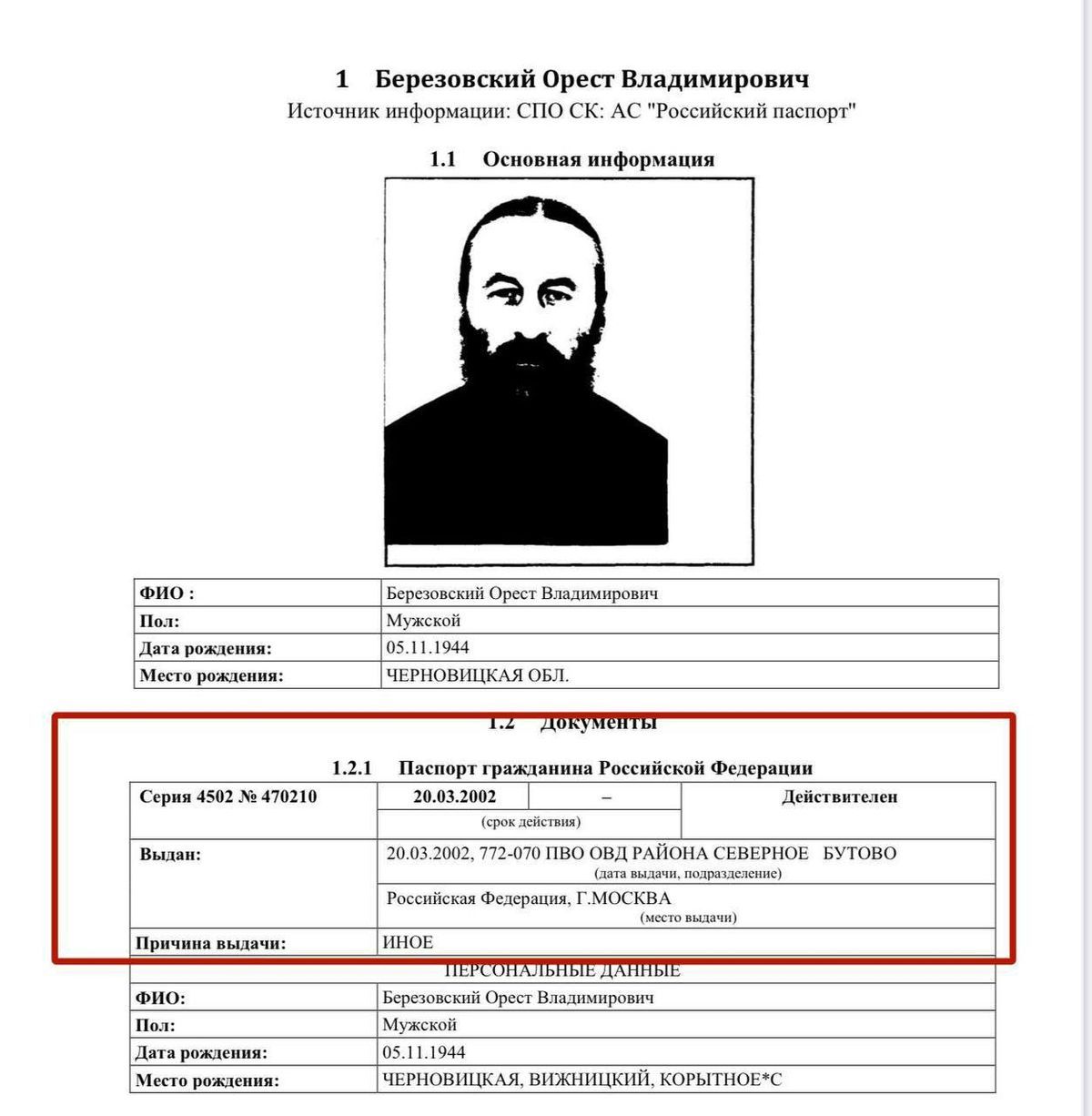В сети опубликовали фото российского паспорта митрополита УПЦ МП Онуфрия