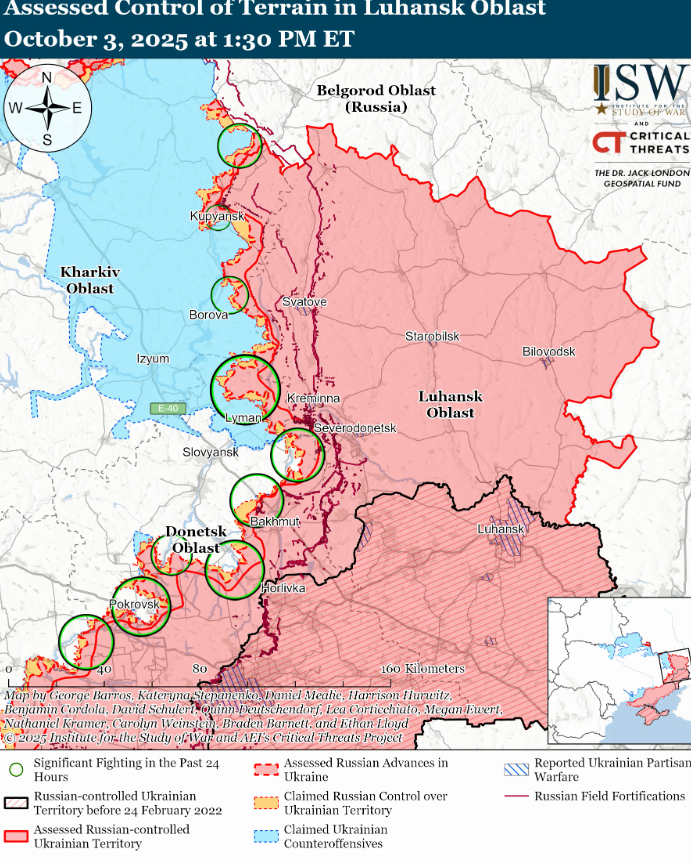 Институт изучения войны оценил ситуацию на фронте по состоянию на 4 октября. По данным аналитиков, и оккупанты, и ВСУ продвинулись на 2 направлениях, передает 24 Канал.