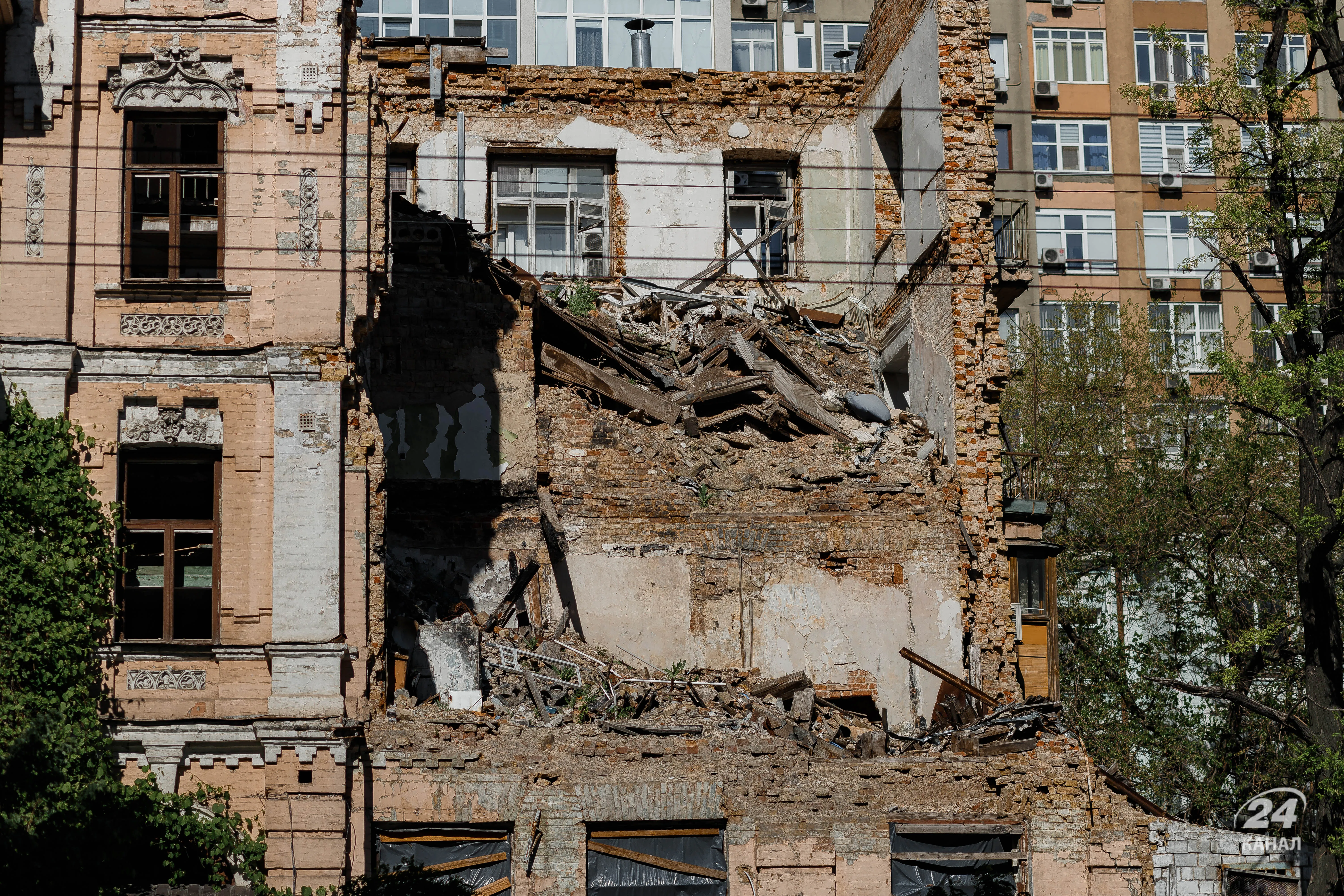 Пока город восстанавливает советские многоэтажки, историческое жилье зависло в неопределенности. 17 октября российский дрон-камикадзе попал в 120-летний дом на улице Жилянской, 116А, половина здания была разрушена, четыре человека погибли.