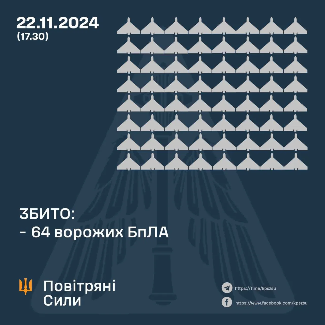 Сбили 64 дрона / Инфографика Воздушных сил ВСУ
