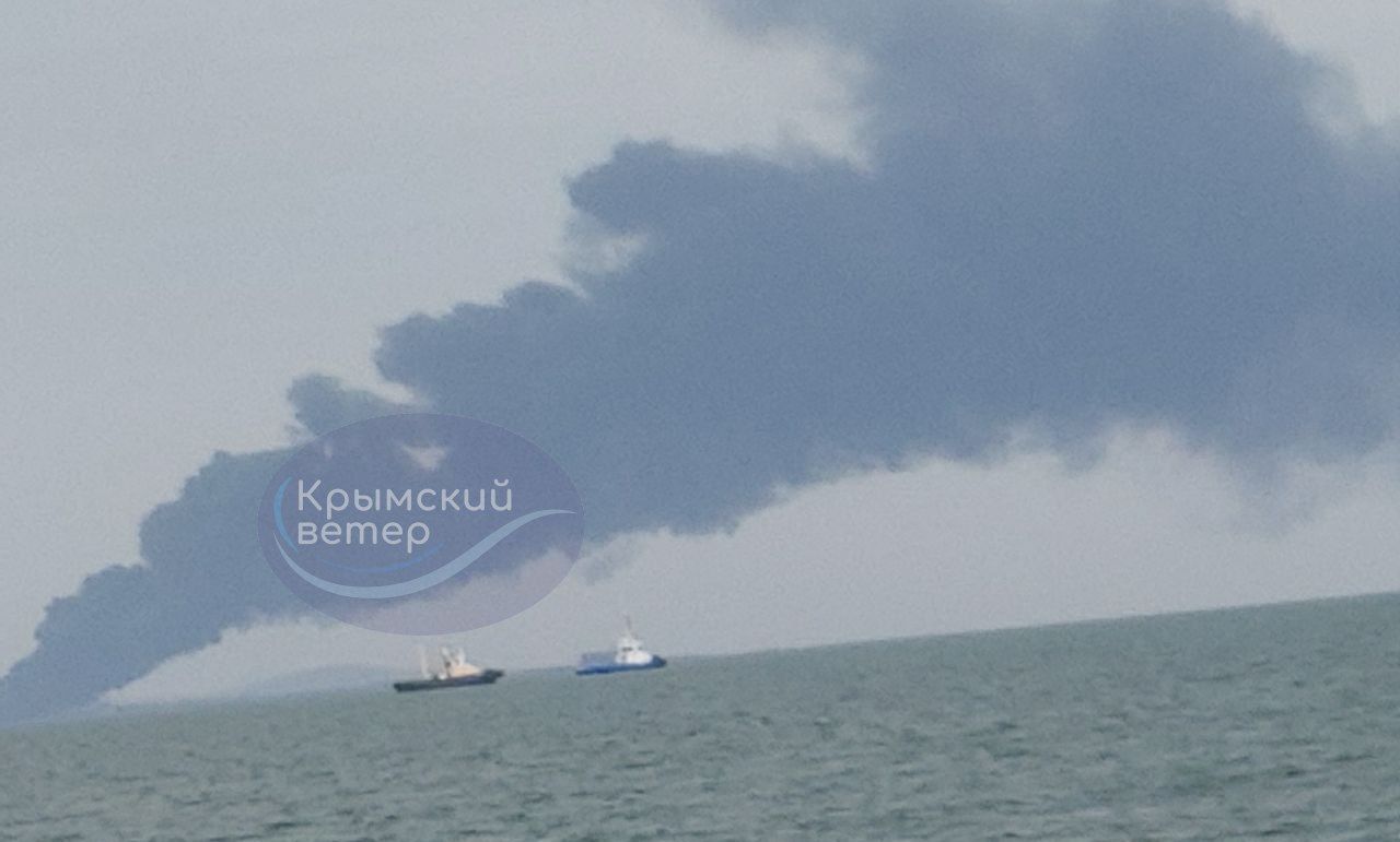 Дым стал виден на фоне звуков воздушной тревоги в Севастополе и перекрытия движения через Керченский мост.