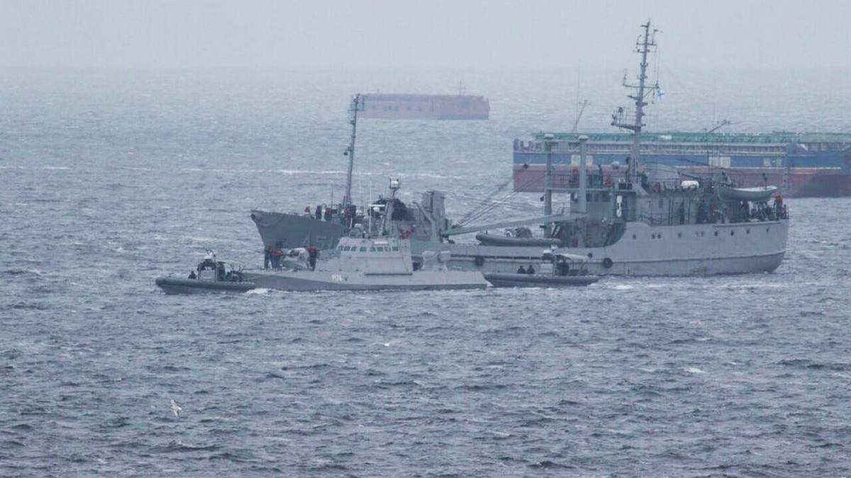 Корабли возвращались в Очаков в сопровождении спецтехники – буксиров "Титан", "Гайдамака", поисково-спасательного корабля "Сапфир" и малого разведывательного корабля "Переяслав".