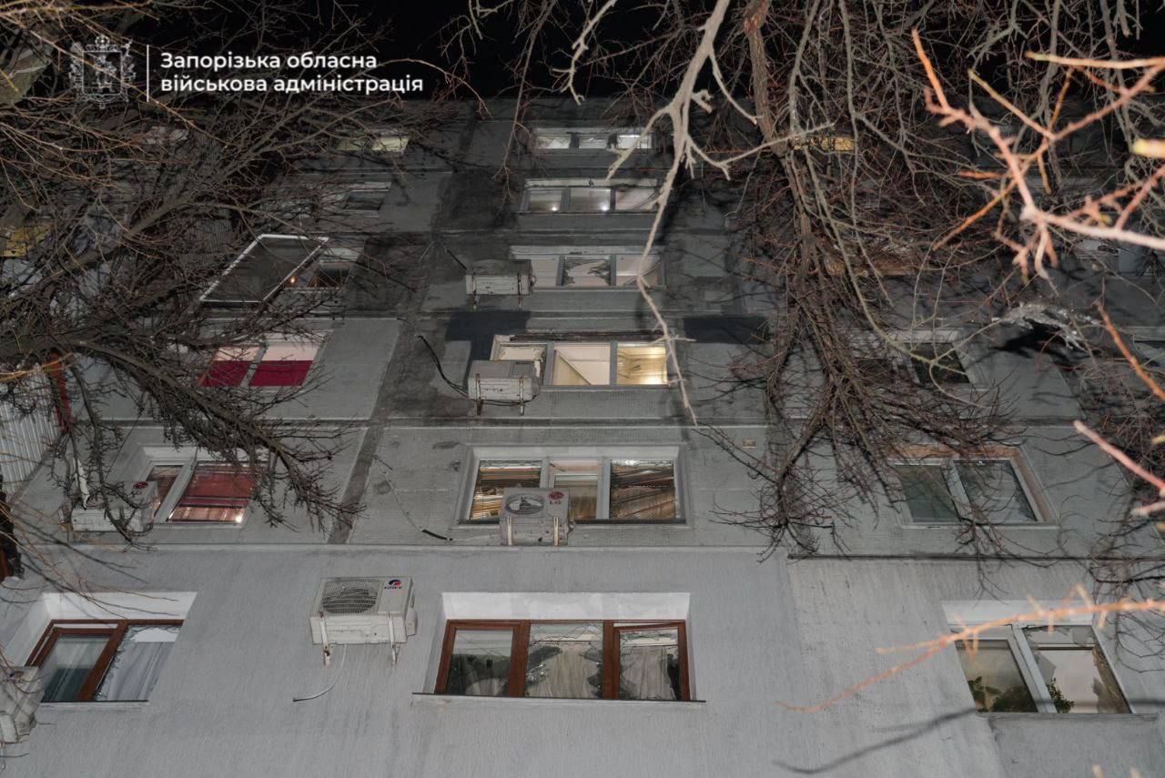 Федоров также показал последствия российской атаки по Запорожью. На опубликованной фотографии видно, что после атаки повреждены балконы жилого дома и остекление. Взрывной волной и обломками частично выбиты окна в девятиэтажке.