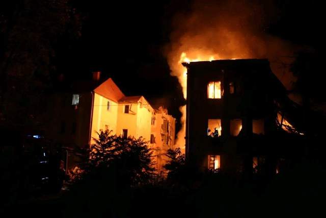 Уже в 23:38 пожар удалось локализовать. В настоящее время продолжается тушение отдельных очагов пожаров и поиск людей под завалами.