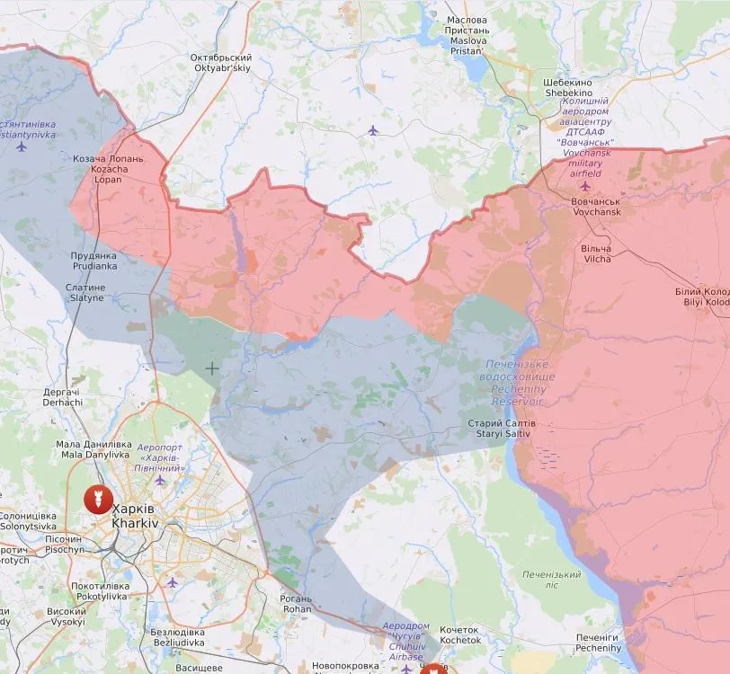 Линия фронта в Харьковской области / Скриншот карты боевых действий Liveuamap
