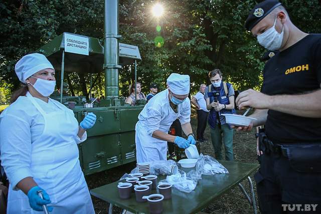 Протестующие ждали появления Тихановской, Колесниковой и Цепкало. Впрочем пустили к протестующим только Колесникову. Она вместе с участниками поскандировала патриотические лозунги, а потом попросила разойтись мирно.