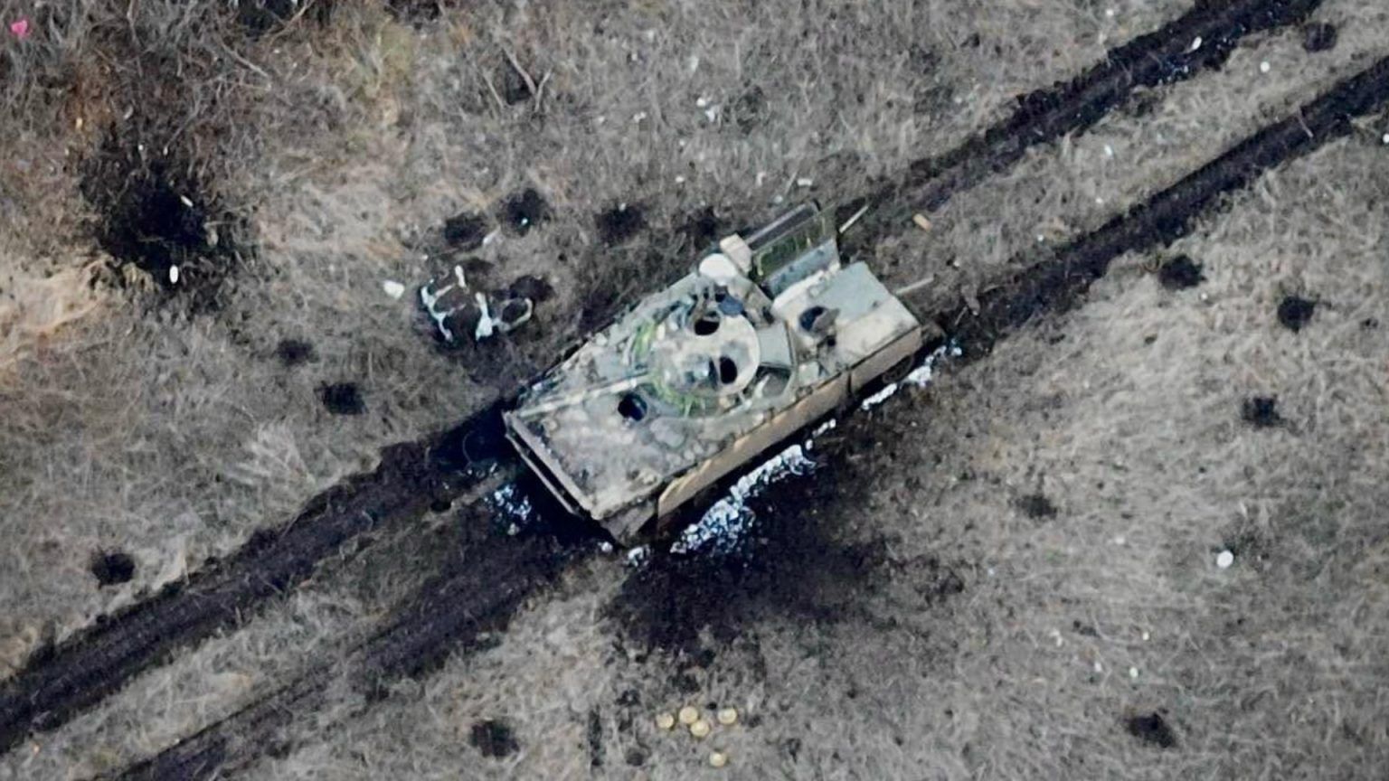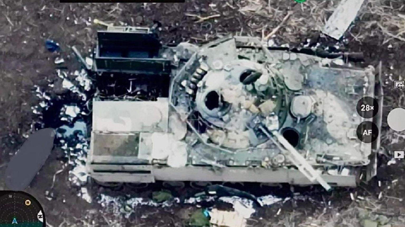На кадрах с беспилотника видно, что россияне потеряли по меньшей мере три танка Т-80БВ, два бронетранспортера МТ-ЛБ и три бронемашины БМП-3.