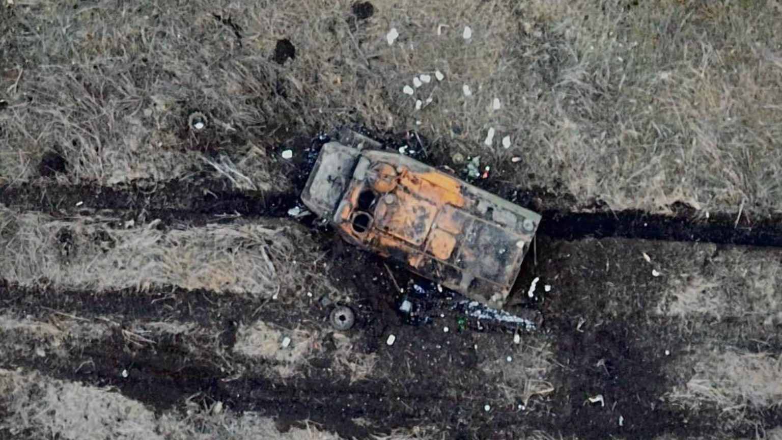 После боя украинские операторы дронов зафиксировали уничтоженную технику российской армии.