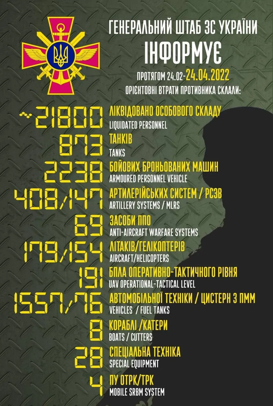 Потери оккупантов / Инфографика Генштаба ВСУ