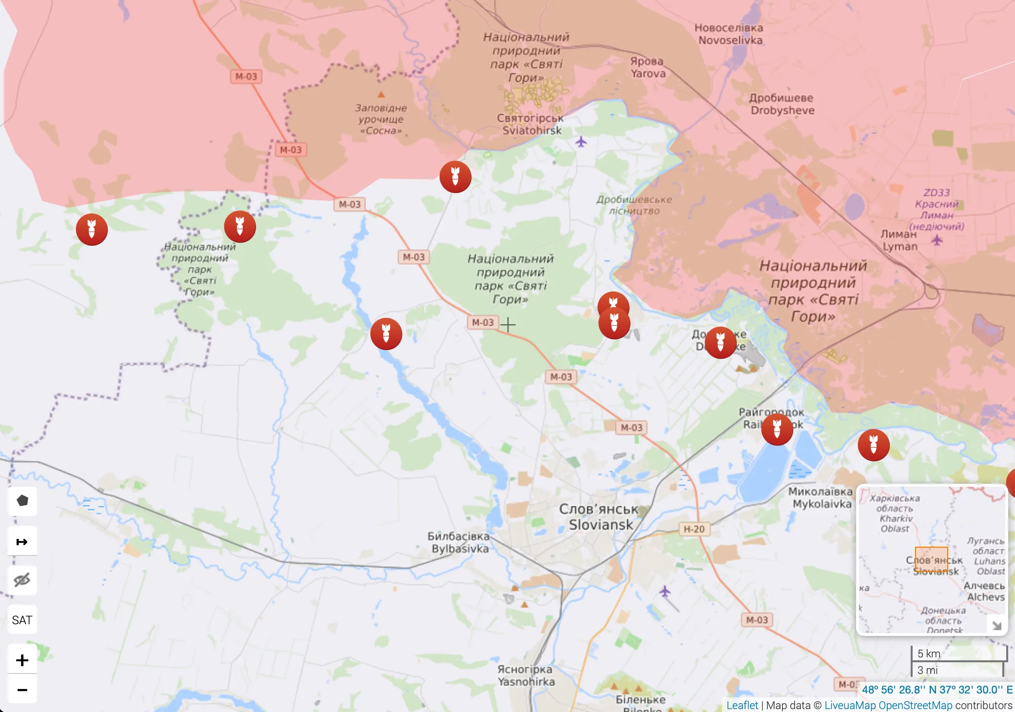 Что касается самого Славянска, то там оккупанты продолжают обстреливать населенные пункты. Враг бьет из артиллерии по Долине, Дубравному, Курульке, Мазановке, Адамовке, Вернополью, Гусаровке, Чепилю, большой Камышевахе, Краснопелью, Крестилищу, Длинненькому и Маяку.