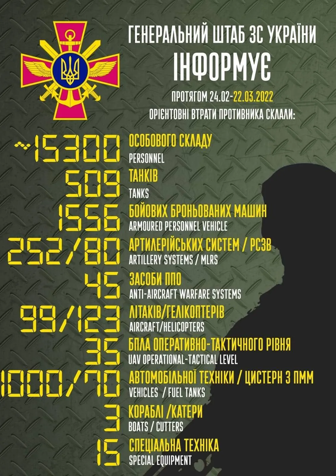 Приблизительные общие боевые потери противника с 24.02 по 22.03