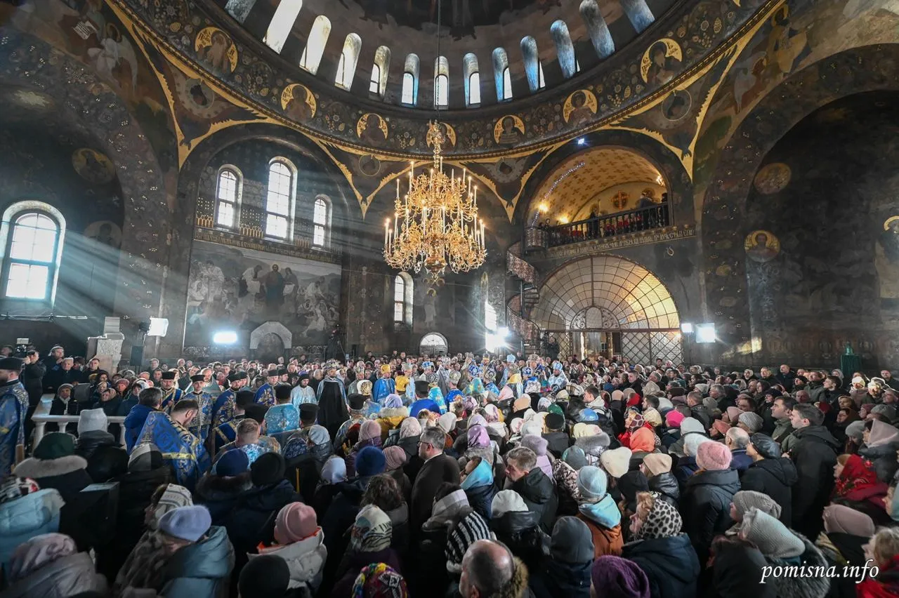 Так, это первая Божественная литургия Епифания в Трапезном храме святых Антония и Феодосия Печерских на территории Верхней Лавры.