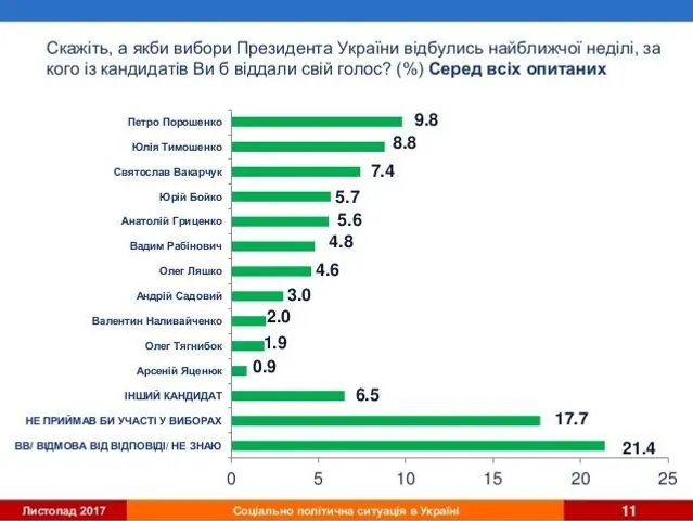 "У нас ничего нельзя прогнозировать, – рассказывает он. – В частности, вероятность досрочных выборов. Поэтому подобные рейтинги, где Вакарчук оказывается в тройке президентских лидеров, больше работают на мобилизацию и достижения краткосрочных целей – договоренности в ВР, коалиции, голосования, получения результата во время голосования за бюджет и прочее. Что угодно может быть "выбросом" того типа социологии".