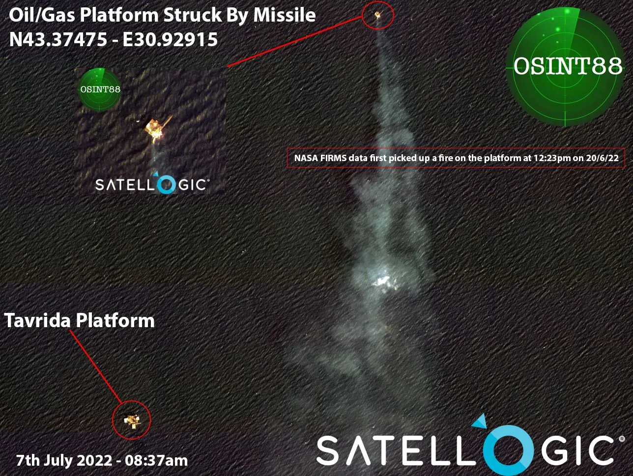 Нефтегазовая платформа в Черном море все еще горит и горит. Структура все еще кажется крепкой,