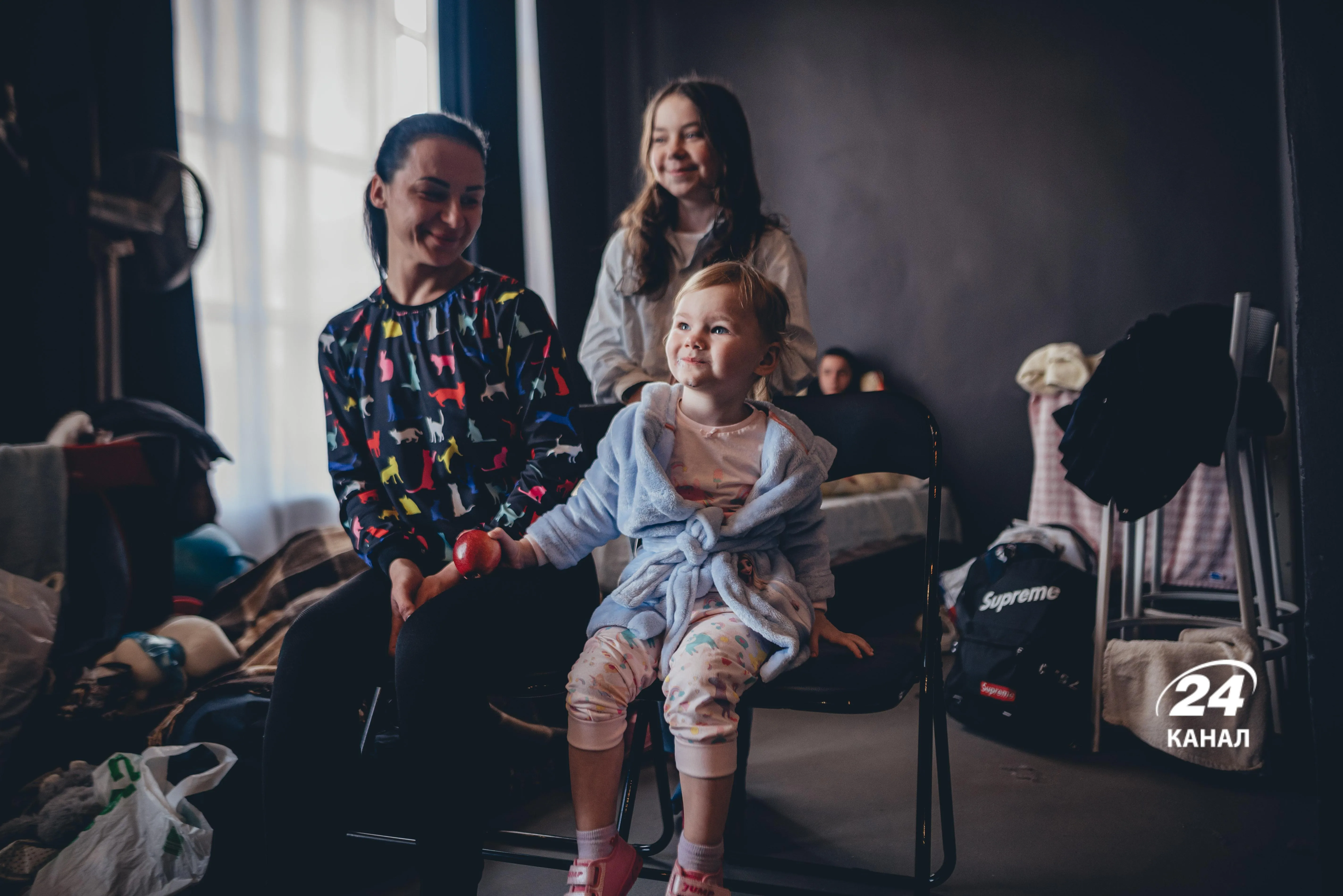 Мария с дочками в приюте для переселенцев во Львове / Фото Валентины Полищук, 24 канал