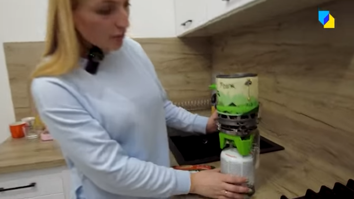 Екатерина Мищенко испытывает фонарики, радио, аварийную лампу и варит сублимированную гречку на горелке / Скриншоты 24 Канала