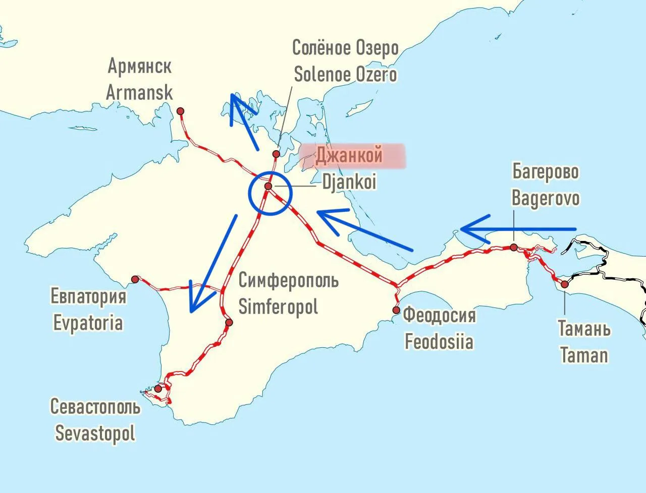 Итак, Джанкой – место схождения всех железнодорожных ветвей, расположен в Крыму. Поэтому, если вывести из строя именно этот железнодорожный узел, можно парализовать поставки врага. Причем, в две стороны: как с полуострова Крым, так и на него.