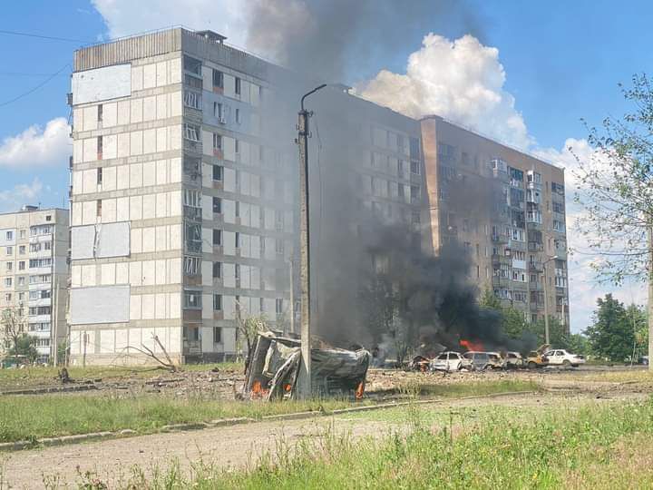 По предварительной информации, повреждения получили 8 многоэтажек. Также загорелись припаркованные рядом автомобили. В ГСЧС уточнили, что россияне совершили теракт в 6-м микрорайоне Первомайского Лозовского района. Захватчики попали по стоянке.