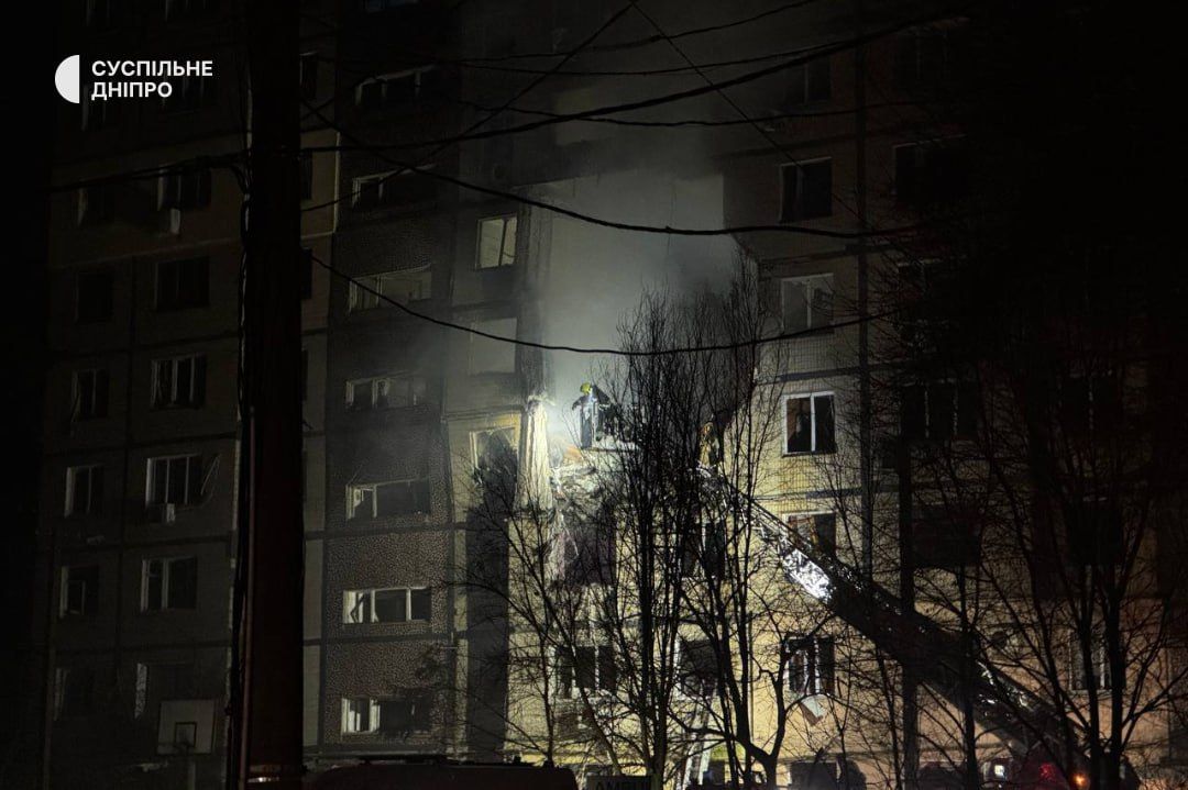 После двух ночи 8 ноября Днепропетровская ОВА информировала, что в Днепре из-за попадания БПЛА повреждена многоэтажка, разрушены несколько квартир, возник пожар.