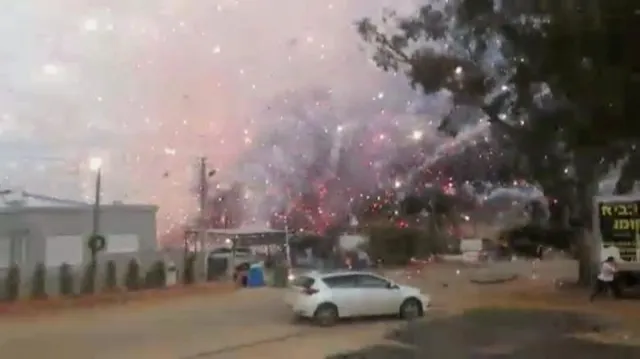 Жителей района призвали спрятаться в защищенных местах, построенных для ракетных атак. Все потому, что около 20 пожарных экипажей боролись с огнем, а взрывы разрушили окна в десятках домов.