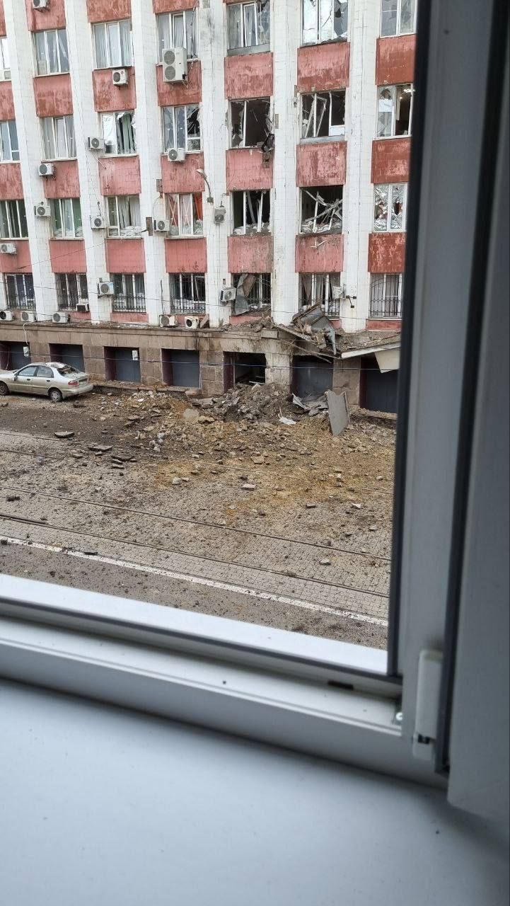 Донецкие паблики и вражеские телеграммы-каналы заявили, что в районе этого здания произошел прилет. Соцсетями распространяются фото и видео с места событий. На кадрах можно увидеть, что территория вокруг объекта усеяна обломками. В здании вылетела часть окон. Также обрушились и погнулись навесы. Некоторые припаркованные рядом машины получили повреждения.