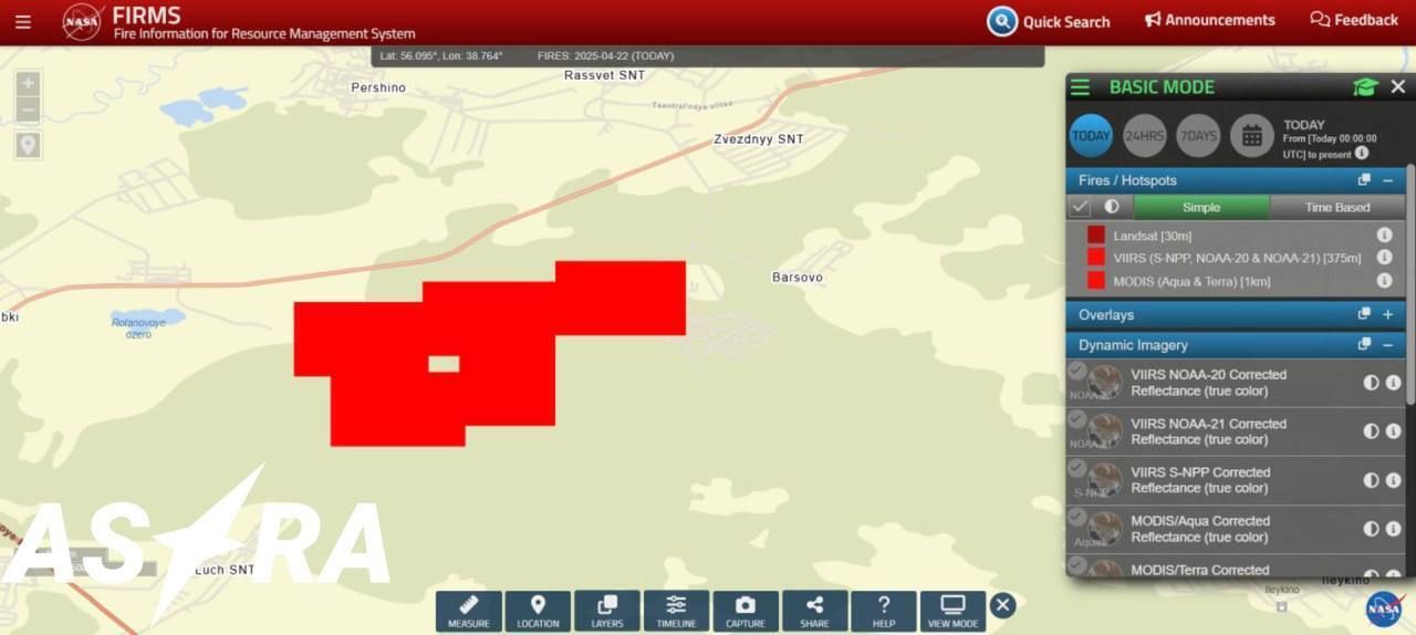 Масштабы пожара на 51 арсенале ГРАУ в России / Карты NASA