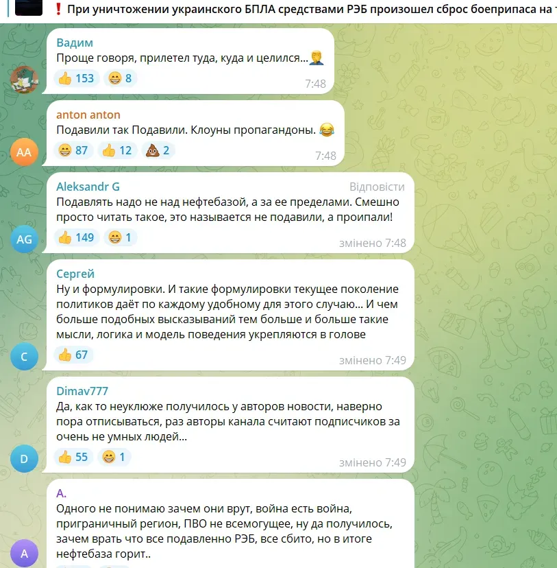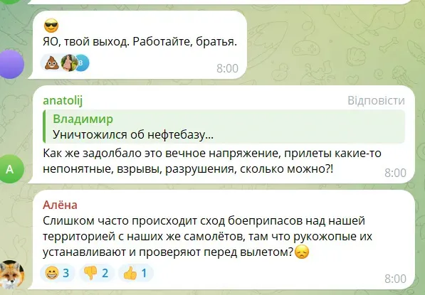 Жители страны-агрессора жалуются на постоянные "прилеты" / Скриншот из тг-каналов
